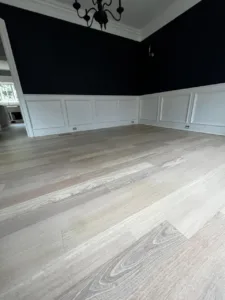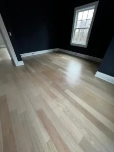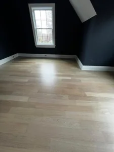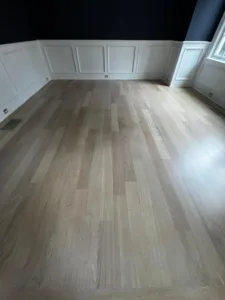 In this project, we updated a Brazilian Cherry floor, known for its deep reddish tones. Using a specialized technique, we neutralized the red hues, resulting in a lighter, more contemporary, and sophisticated appearance. The updated look preserves the wood's natural character while ensuring long-lasting durability.