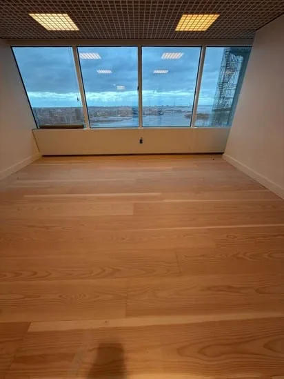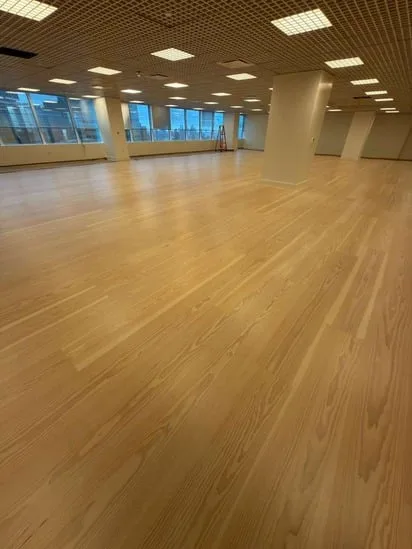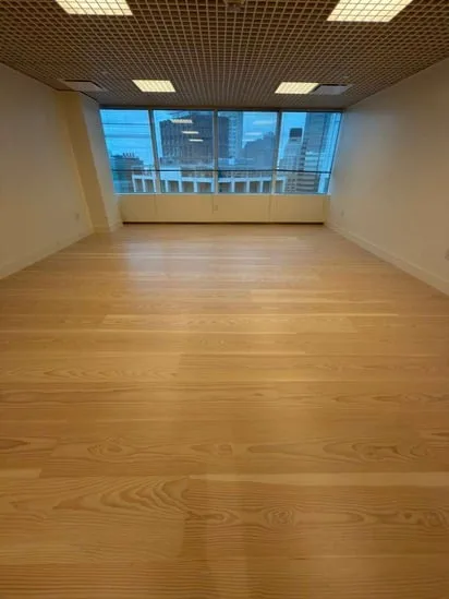 This project involved the installation of a commercial hardwood floor across a large office environment. First, the existing surface was prepared to ensure proper leveling and stability. Subsequently, the hardwood planks were carefully installed with consistent alignment throughout the open areas and enclosed rooms. As a result, the finished flooring provides a uniform appearance, supports daily commercial use, and integrates seamlessly with the building’s layout and natural light exposure.