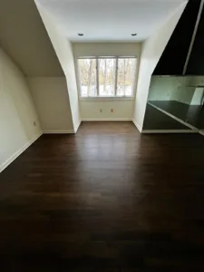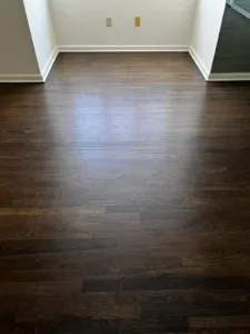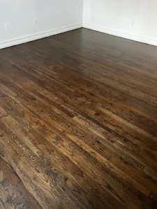 This project features a stunning floor transformation with a rich Dark Walnut stain, enhancing the wood’s natural grain and depth. Finished with three coats of Bona Traffic HD, the result is a durable, long-lasting surface with a beautiful satin sheen.