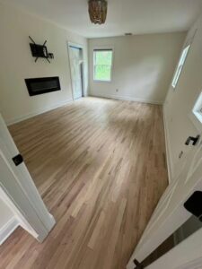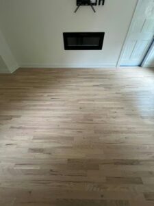 We gave these hardwood floors a fresh, modern look with a Refinish with Bona Nordic Seal, followed by three coats of Bona Mega. The result is a durable, subtly whitewashed finish that brightens the space while preserving the wood’s natural charm.